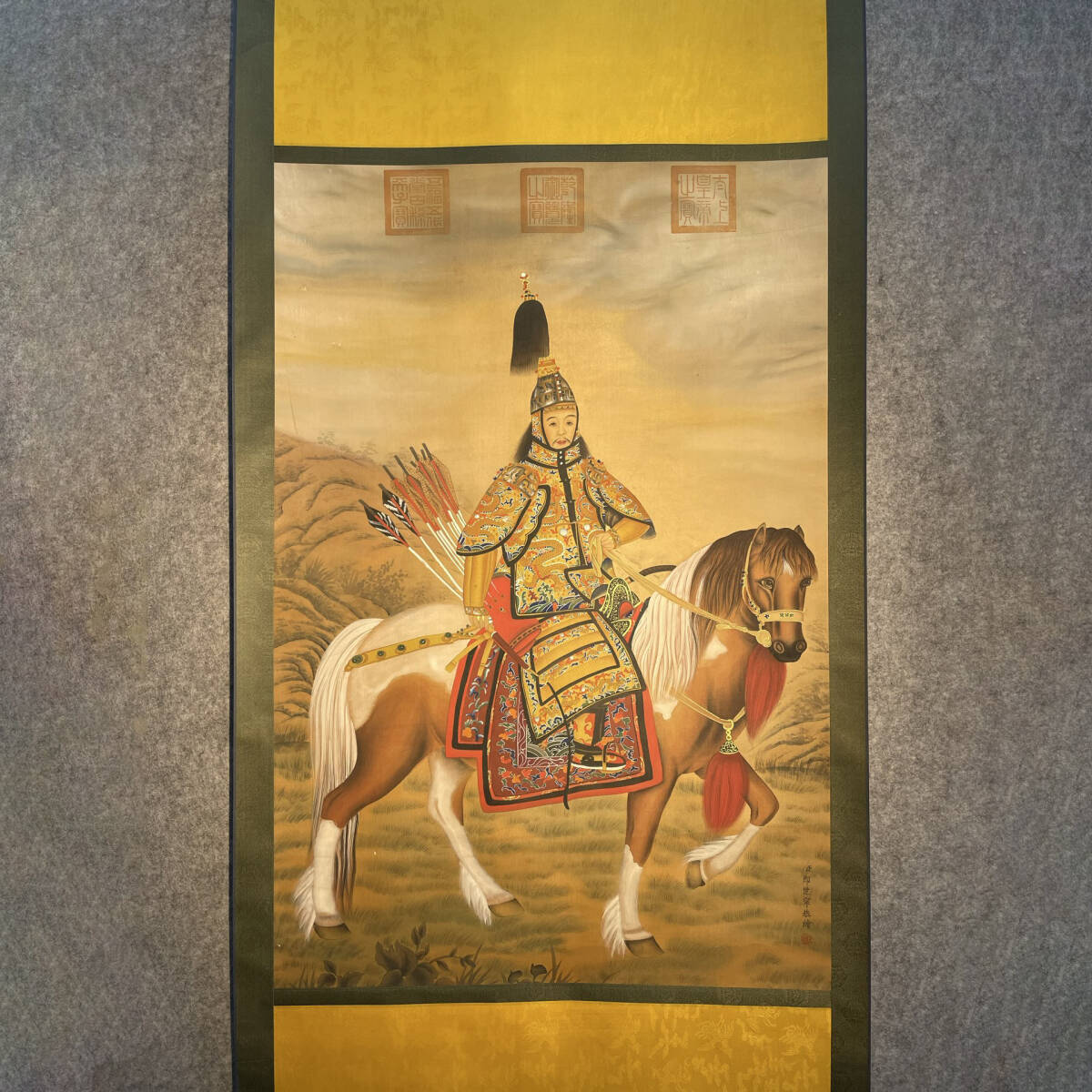 - 6+GV3101「東洋美術」 人間国宝 中国骨董 書画 水墨画制品 【朗世寧の精巧な手描き絹絵「大岩図」】 旧物 孤品 珍品 収蔵価値が高い