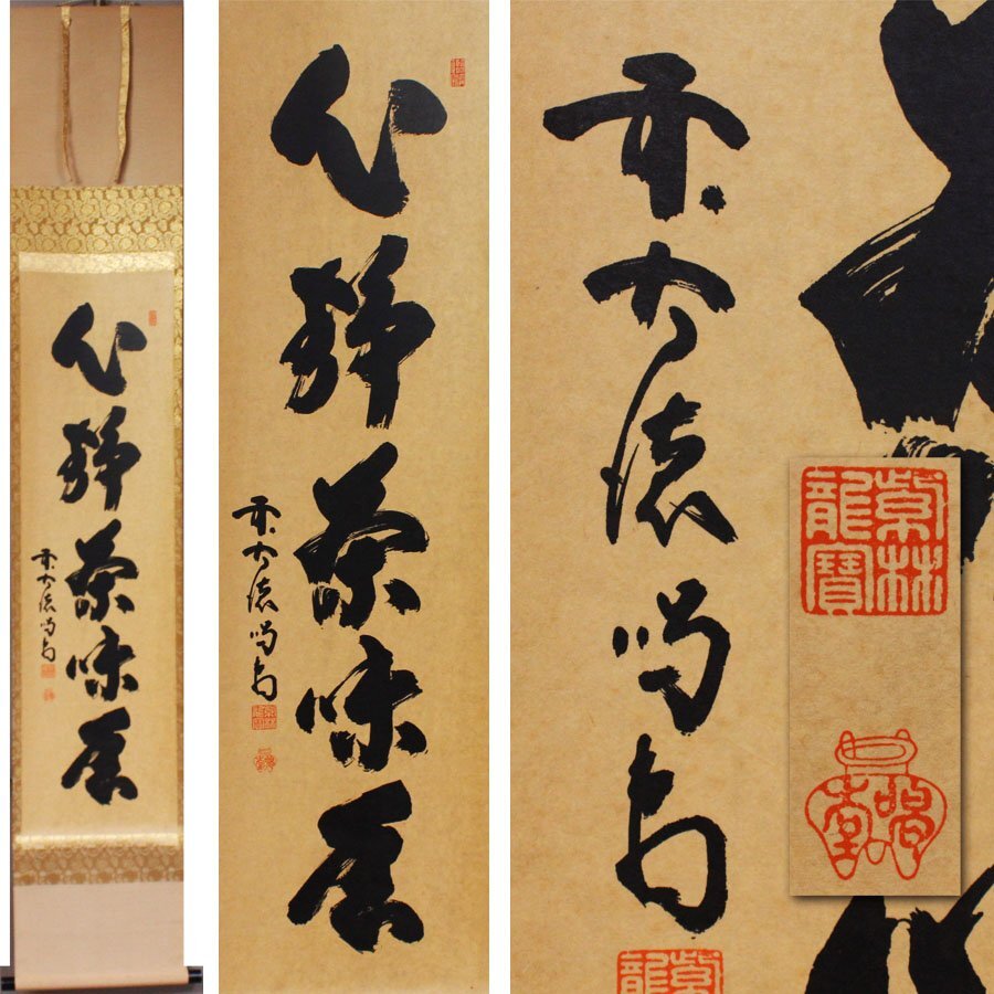 - 《源》【即決・送料無料】大徳寺 細合喝堂 筆 茶掛一行書「心静茶味香」/箱付