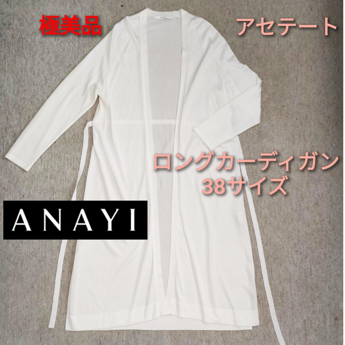 - 【極美品】ANAYI アナイ★ロングカーディガン 白 アセテート 38サイズ 春夏秋 羽織もの ホワイト