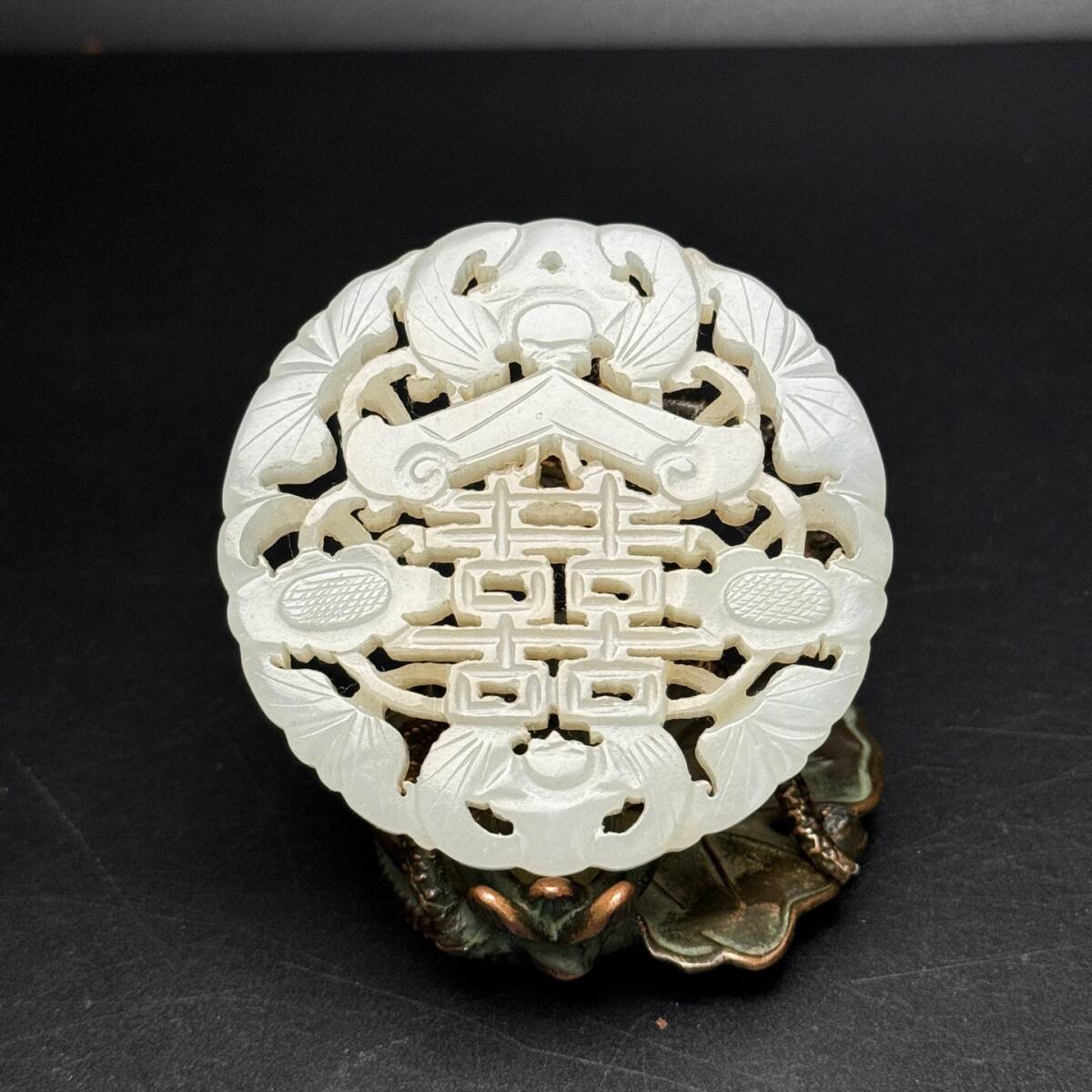 - 蔵友旧蔵出 和田玉製 細密彫 透空彫 福在眼前紋 玉珮 希少珍品 貴重品 置物 古賞物 中国古玩 中国古美術品