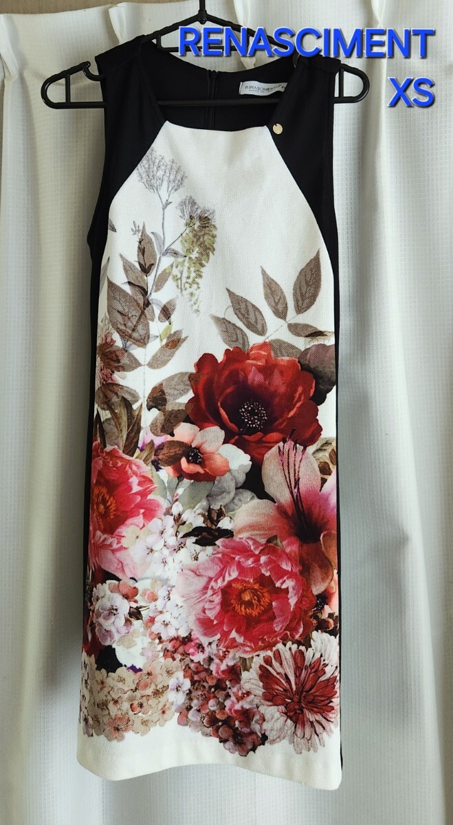 - 未使用レベル リナシメント バラ柄タイトワンピース ノースリーブ 黒 白