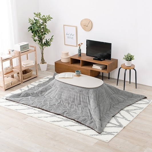 - こたつ+うす掛け布団 2点セット(ホワイトウォッシュ/グレー) カルミナ950WS+ビケ950GY