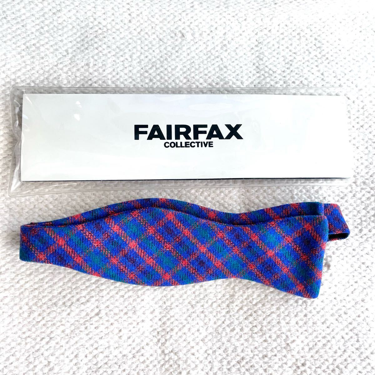 - 未使用 フェアファクス FAIRFAX 蝶ネクタイ ネクタイ ウール 毛 手結び 青 チェック柄 ビジネス フォーマル 礼装 パーティー 日本製
