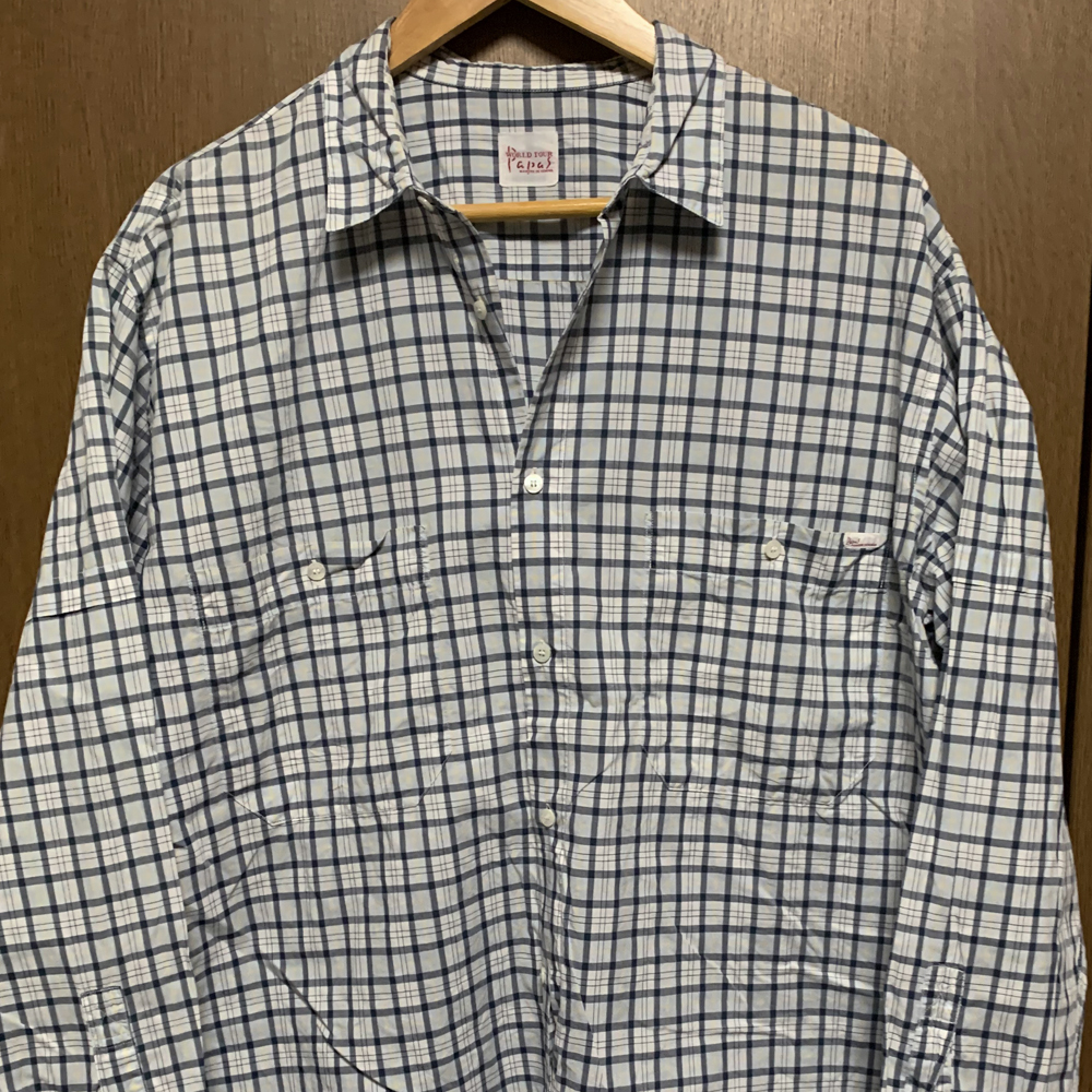 - L【Papas MANIERE DE HEMING|長袖シャツ】パパス ライトグレー系 チェック ワンポイント World tour