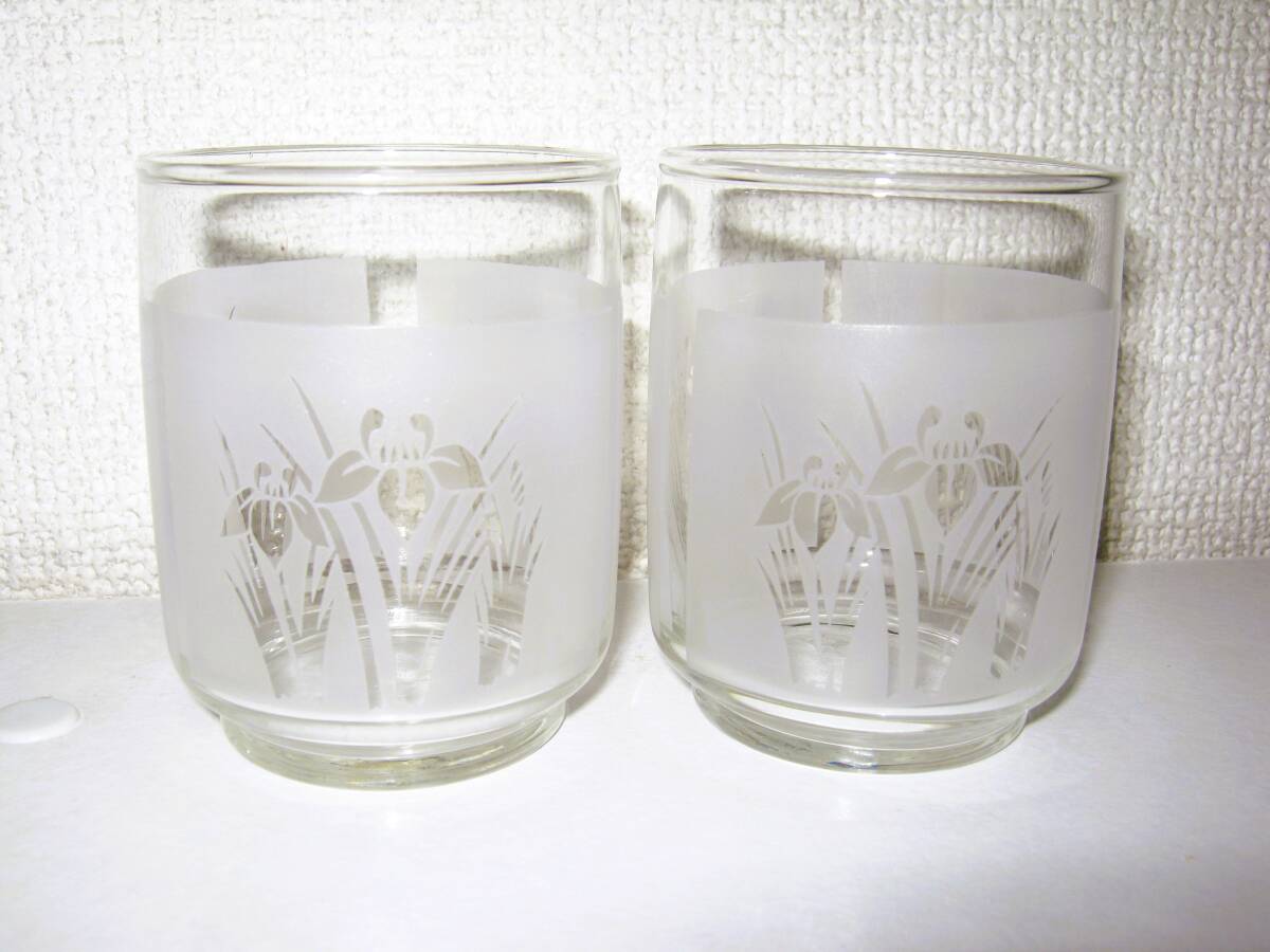 - ヴィンテージ【佐々木硝子 グラス 菖蒲 2個】ショウブ 花柄 和食器 ガラス製 日本製 和食器 コップ レトログラス お洒落