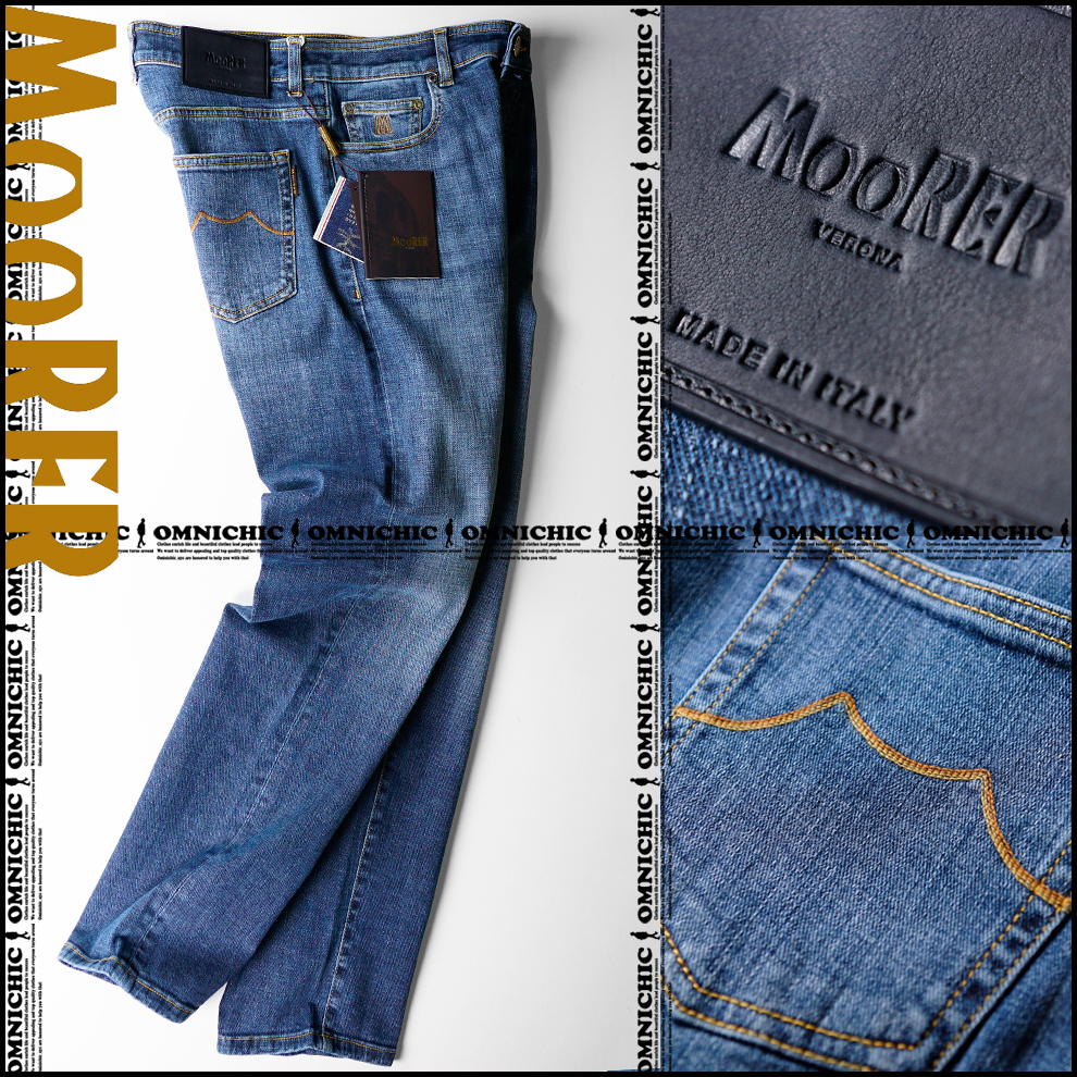 > 新シルエットBANDINI■新品正規/伊製【MOORER】ムーレー/伸び伸びストレッチ/美しいインディゴの艶ハンドメイドテーラーデニム35/W88~90cm