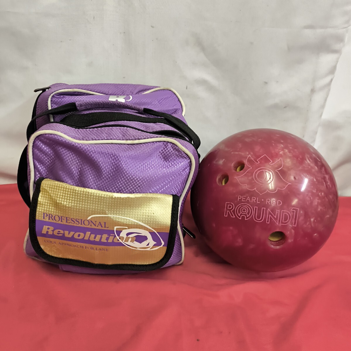 - ◎【ボーリング ボール】中古品 引き上げ品 玉 ROUND1 PEARL RED ボウリング 4.7kg ピンク ケース ボウリングボール 249-21