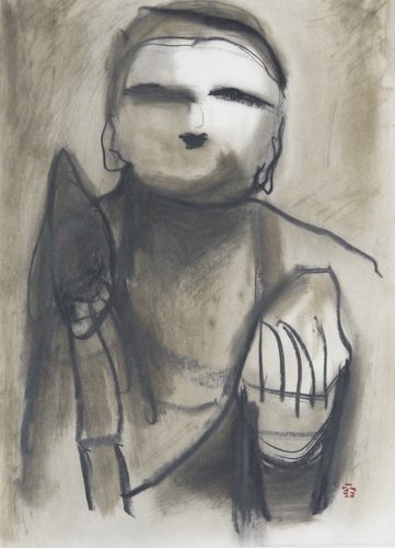 - 【真作】横手由男 水墨画 「大きな地蔵」 雨情縁(うじょうゆかり)・「雨さん」の通称で知られた放浪画家【信頼と実績の正光画廊】