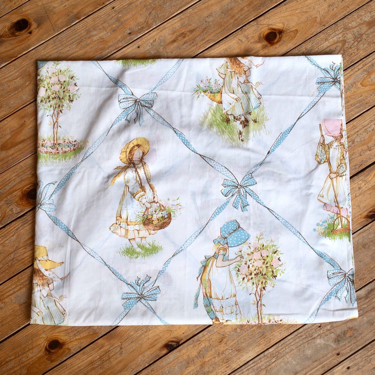 - USAヴィンテージ ベッドシーツ ホリーホビー holly hobbie リメイク生地 素材 絵本 レトロガール ボックスシーツ アメリカ仕入 B