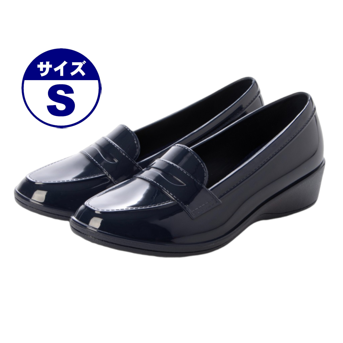 - レディース エナメル調 レインローファー レインシューズ ラウンドトゥ ローヒール インソール 晴雨兼用 完全防水 防滑底 25058-nav-s