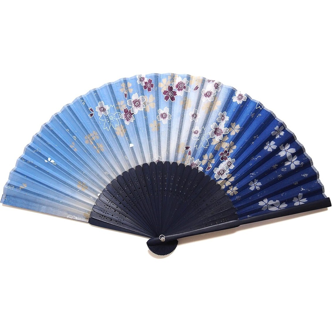 - 旭王 扇子 流れ桜 (青) 21cm 30間 婦人 レディース シルク 扇子職人 手作り RPJセット 121050