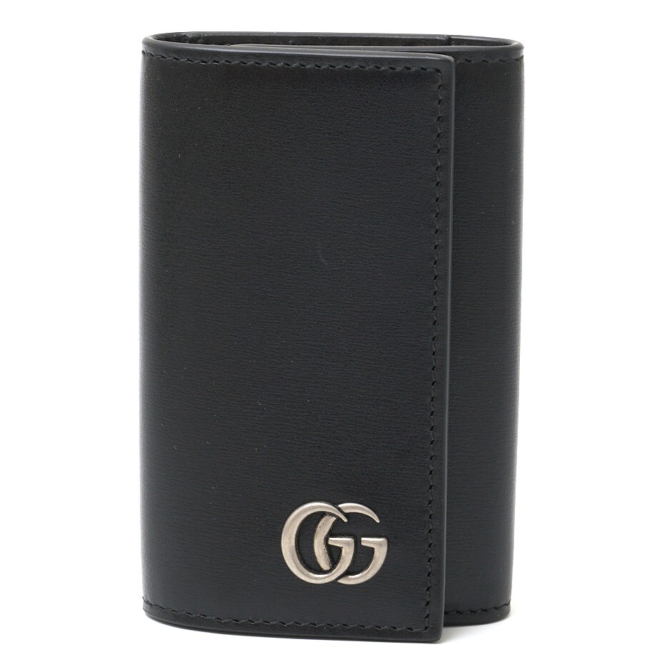 > GUCCI グッチ GGマーモント 6連キーケース 435305 鍵 キーリング レザー ブラック×シルバー金具 小物 シンプル メンズ