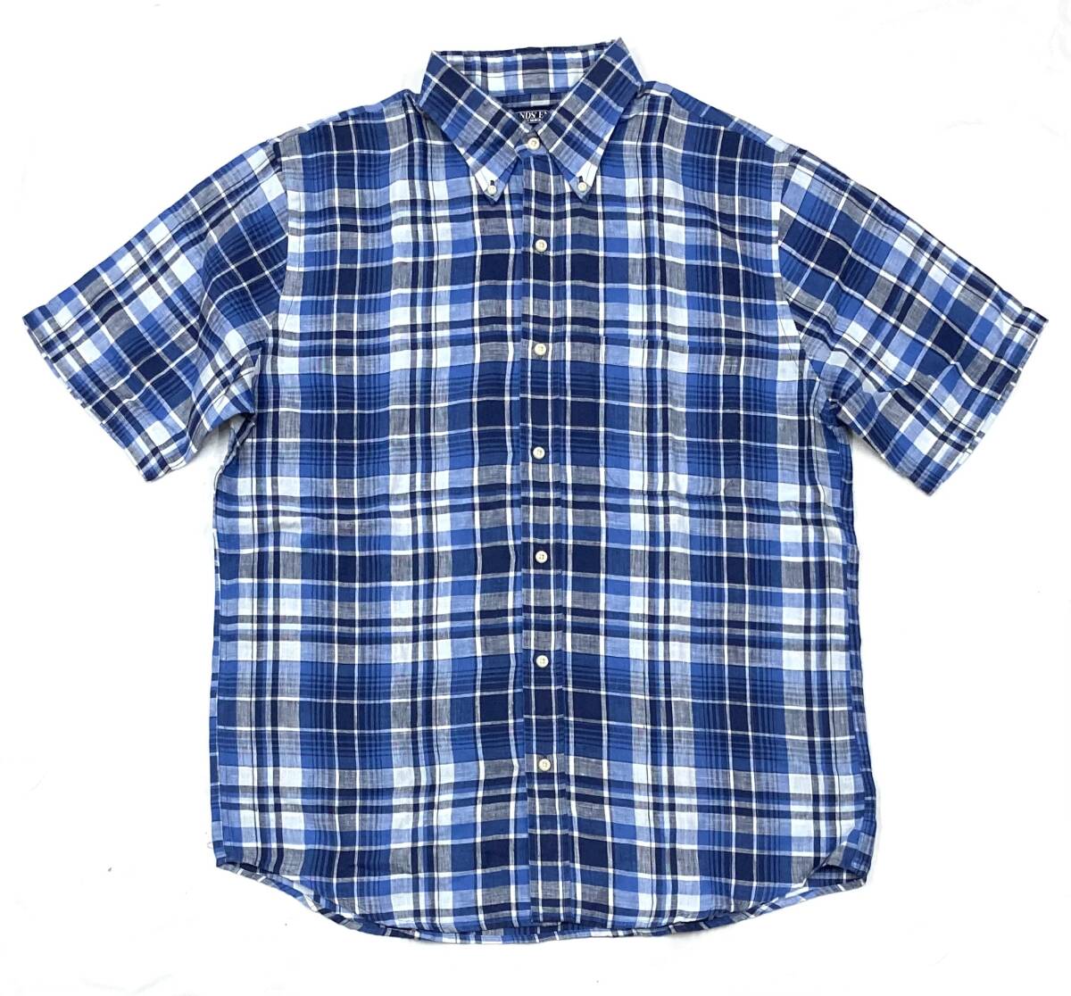 - デッド 〜00s LANDS’END ランズエンド リネン100% 半袖 BDシャツ チェック M 好配色