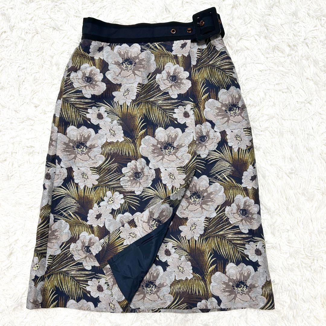 - 美品 adore アドーア 花柄 ボタニカル ジャガード ラップスカート S フレア Aライン マルチカラー