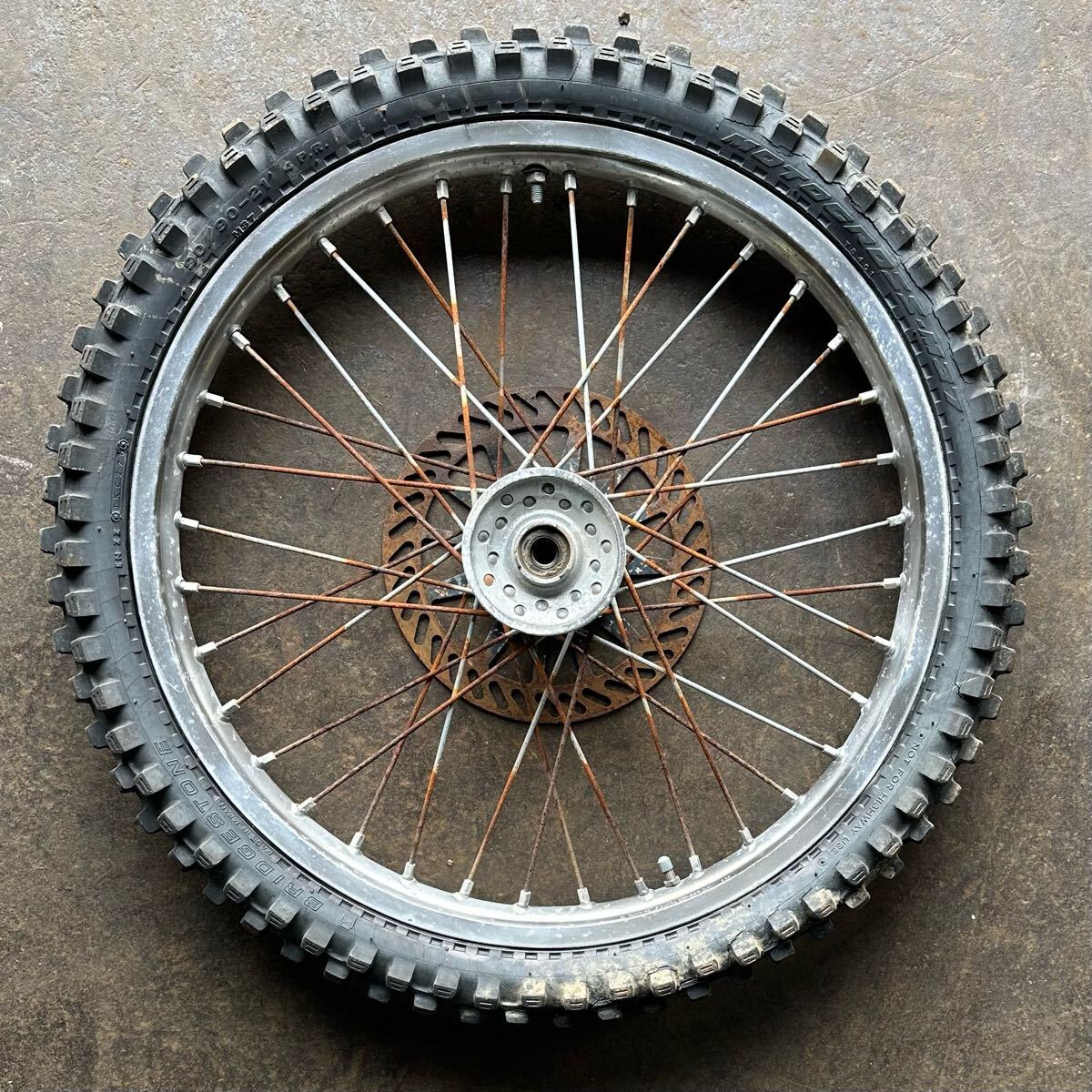 > YAMAHA/ヤマハ 3SR YZ125 純正 フロントホイール TAKASAGO J21×1.60 ブレーキディスク 検/YZ125/YZ125A/旧車/当時物/モトクロス/レース