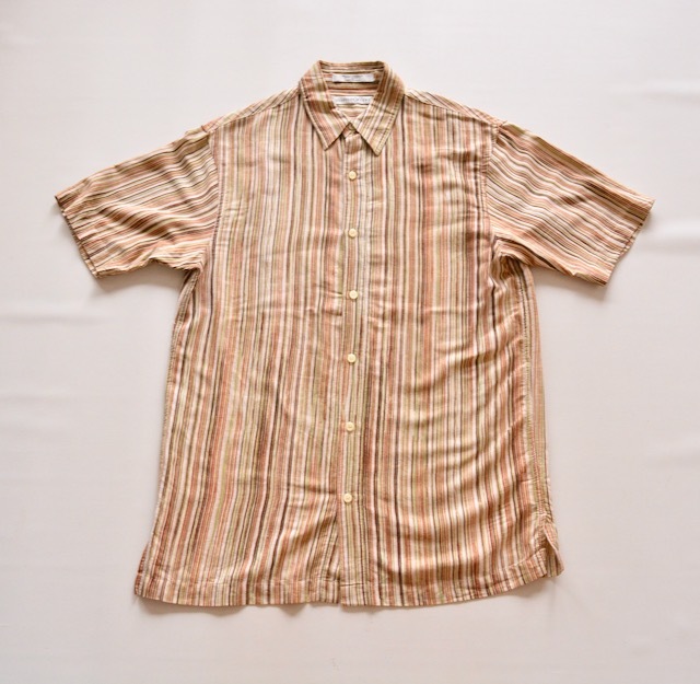 > * ジェフリービーン シルク & レーヨン 半袖シャツ S / ヴィンテージ Geoffrey Beene 古着 アメリカ古着 マルチカラー ストライプ