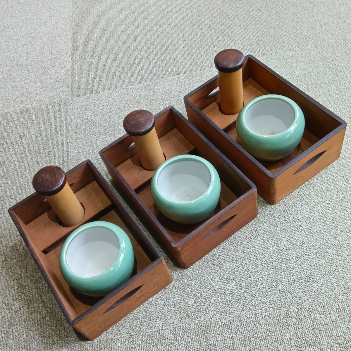 - 莨盆 たばこ盆 煙草盆 3個セット 喫煙道具 骨董 アンティーク
