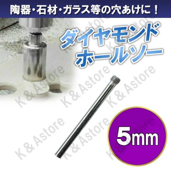 > ダイヤモンドホールソー 5mm ホールカッター ガラス タイル 石材 陶器 磁器 穴あけ ホルソー コアビット 電動ドリル ドライバー 切削工具