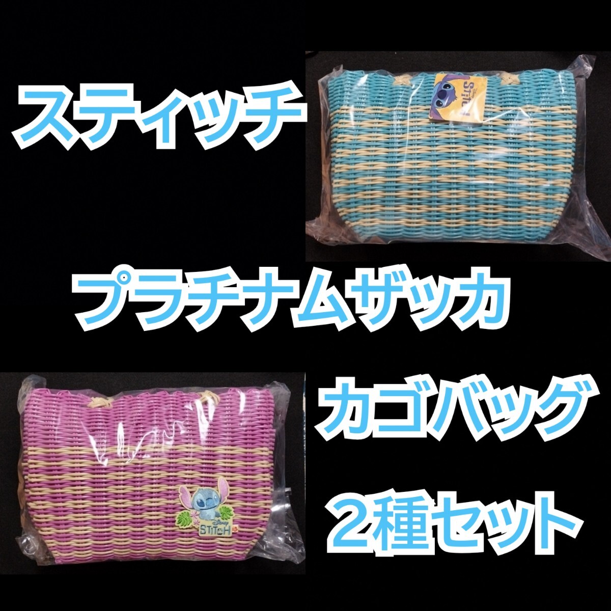 - 【数量2】リロ & スティッチ プラチナムザッカ 編みカゴ バッグ 2種セット ①
