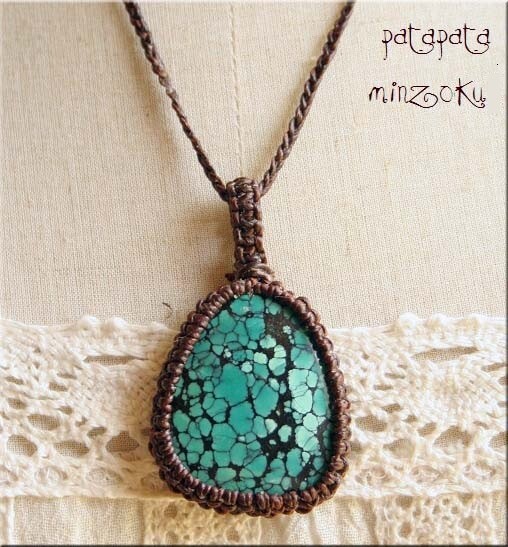 - ターコイズ 空の精霊 ペンダントトップ マクラメ 石包み フレーム編み ペンダント 天然石 パワーストーン