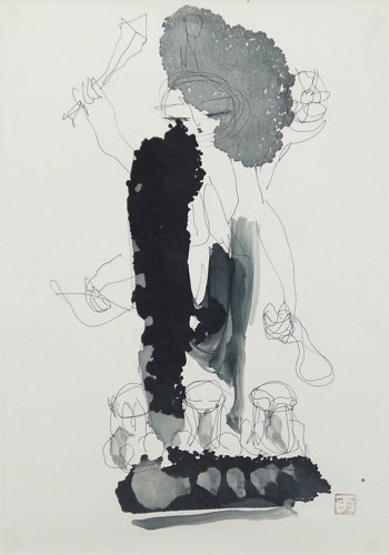 > 【真作】横手由男「剣」水墨画 雨情縁(うじょうゆかり)と名乗り、通称「雨さん」の放浪画家・剣を持つ女神です【信頼と実績・正光画廊】