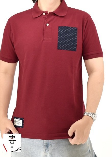 - 和の円相鹿の子ポロシャツ◆喜人 ワイン XLサイズ KJ-52202 和柄 和風 シンプル きじん