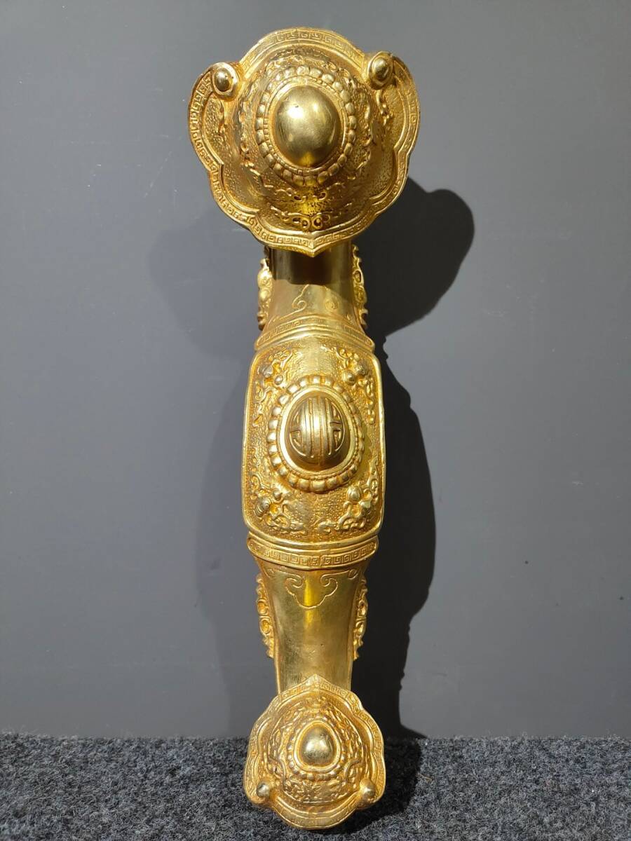 - 『館蔵珍品 銅製 塗金 五福如意 置物 賞物』稀少珍蔵品 古賞物 貴重物品 収蔵品 中国古美術 時代物 古董品
