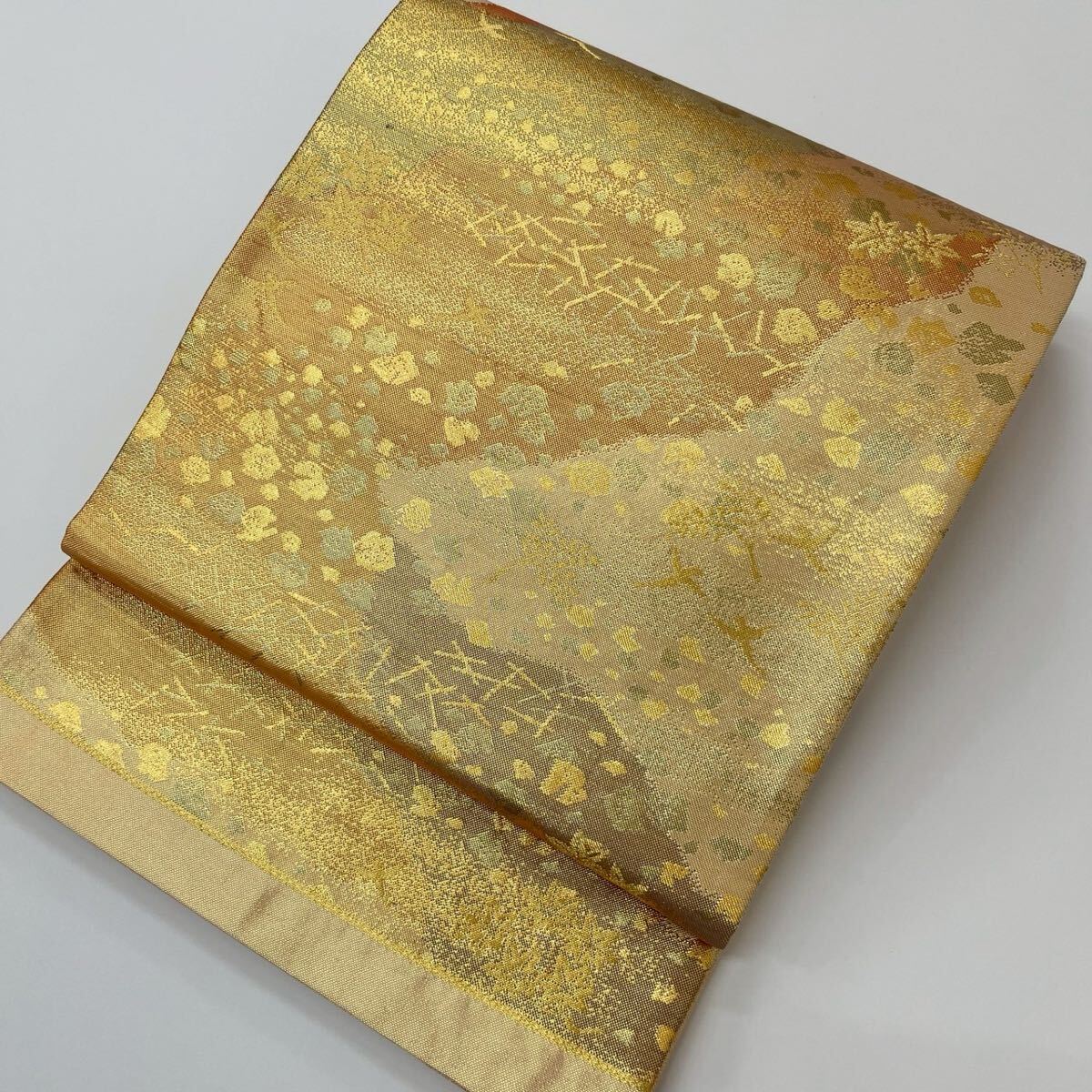 - 袋帯 金彩 美しい織出し 正絹 着物 W-1518