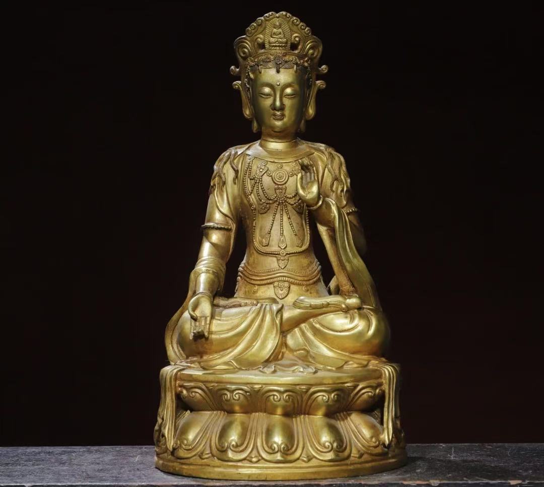 - 仏像 清代 旧蔵 銅金【観音菩薩】 チベット古寺 銅製 銅琉金 唐物 收蔵品 時代物 古美術 古置物 希少珍品 供養品 文房具 仏教6.26