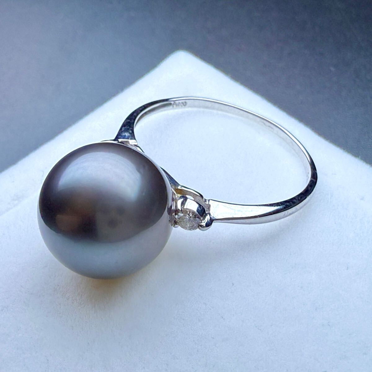 > 照り◎ 南洋パール 黒蝶真珠 ダイヤモンド 指輪/リング pt900 14.5号 3.9g 0.08ct 11.24㎜