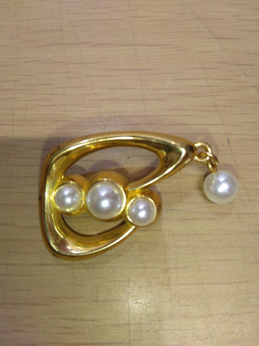 - レディース パール ブローチ ゴールドカラー 4cm 人工パール