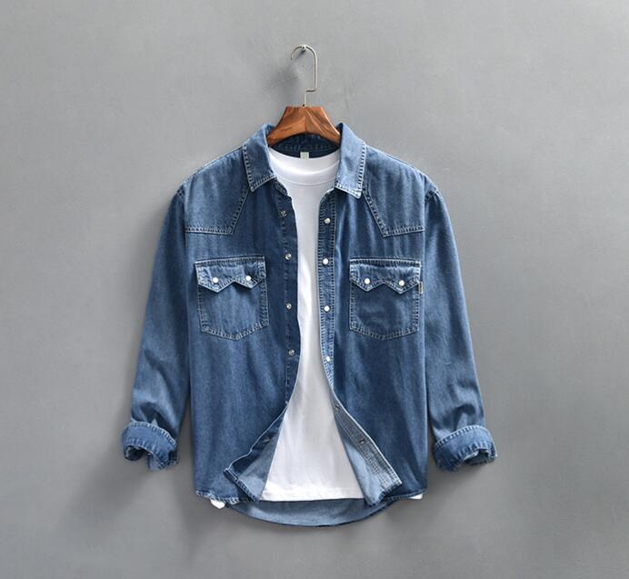 > 新品 デニムシャツ カーゴシャツ シャツジャケット 長袖シャツ メンズ カジュアル ウエスタンシャツ トップス ブルー XLサイズ選択可
