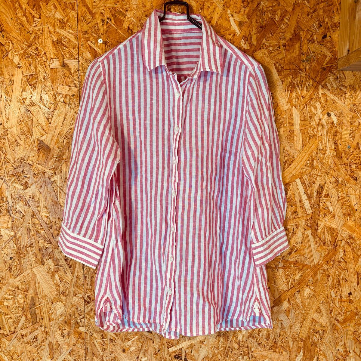 - 美品 千趣会 ストライプ 七分袖シャツ シャツ ピンク レディース リネン トップス 4587