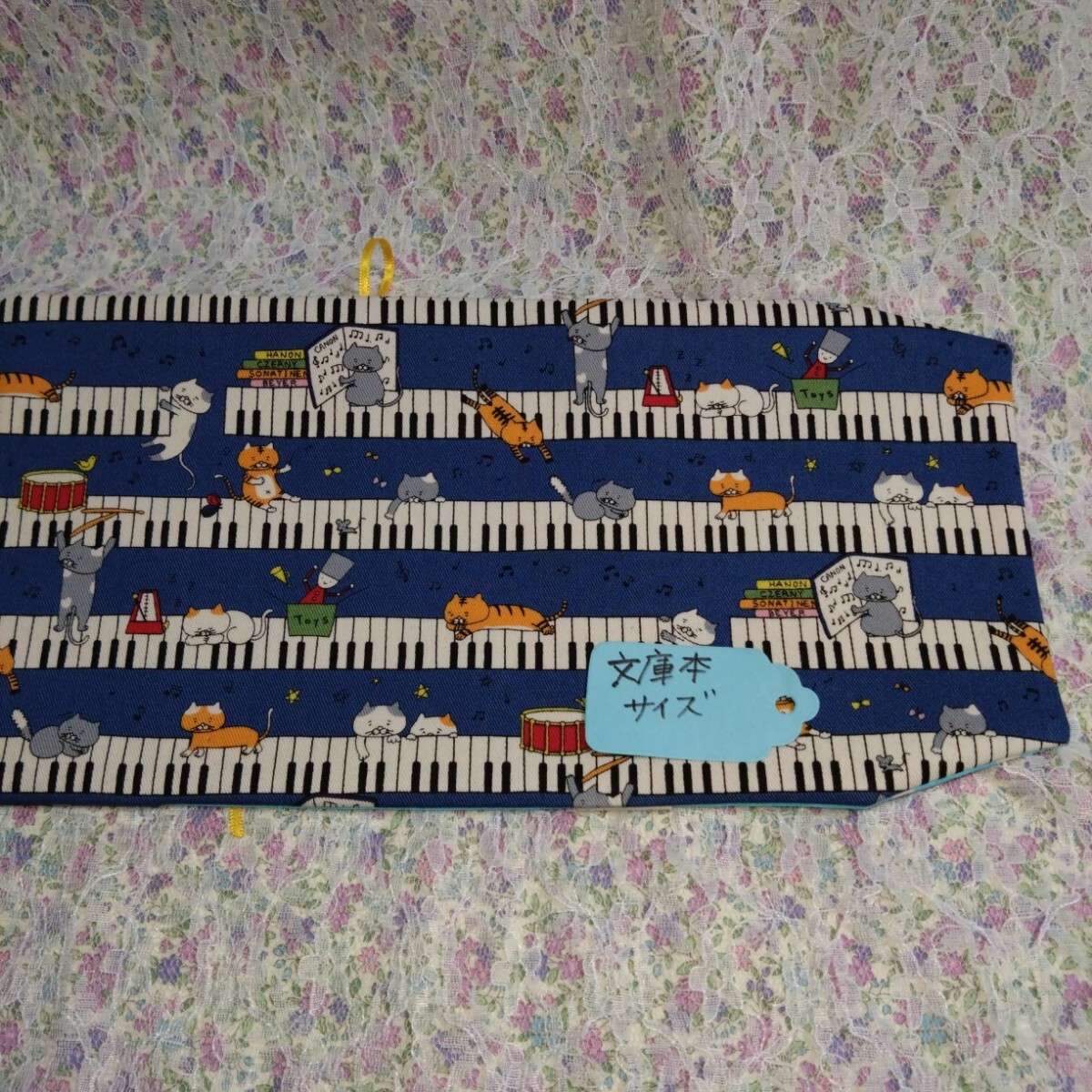 - ブックカバー 文庫本size☆ピアノ猫 青 ハンドメイド