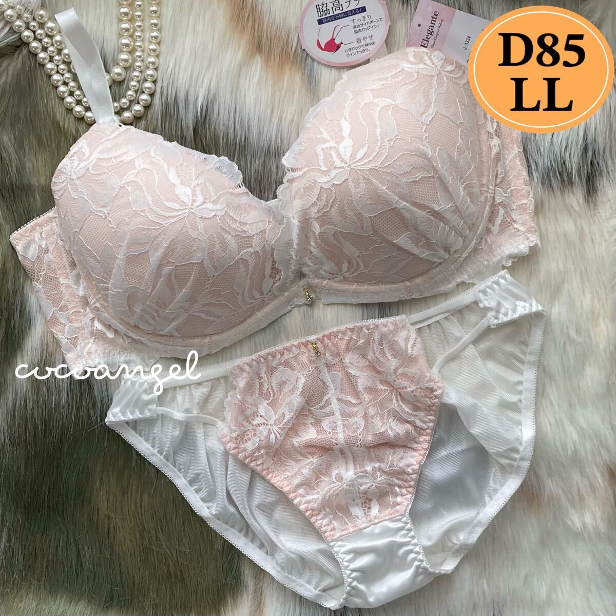 > ラスト【D85/LL ホワイト 上下】新品 ブラ&ショーツ ブラジャーショーツ 脇高 パッド付き レース セクシーパンティ Dカップ 大きいサイズ