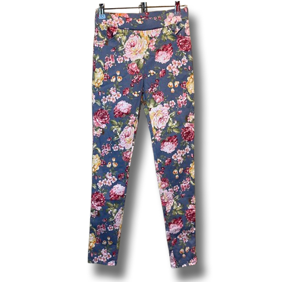 - 新品 DOUBLE.H お花柄 スーパーストレッチ素材 スキニーパンツネイビー Freeサイズ