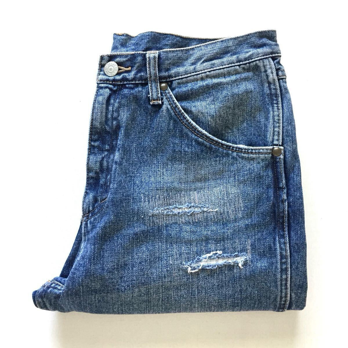 > 美品 BEAMS Distressed jeans ビームス ダメージジーンズ クラッシュジーンズ Sサイズ リペア加工 ジーパン デニムパンツ インディゴブルー