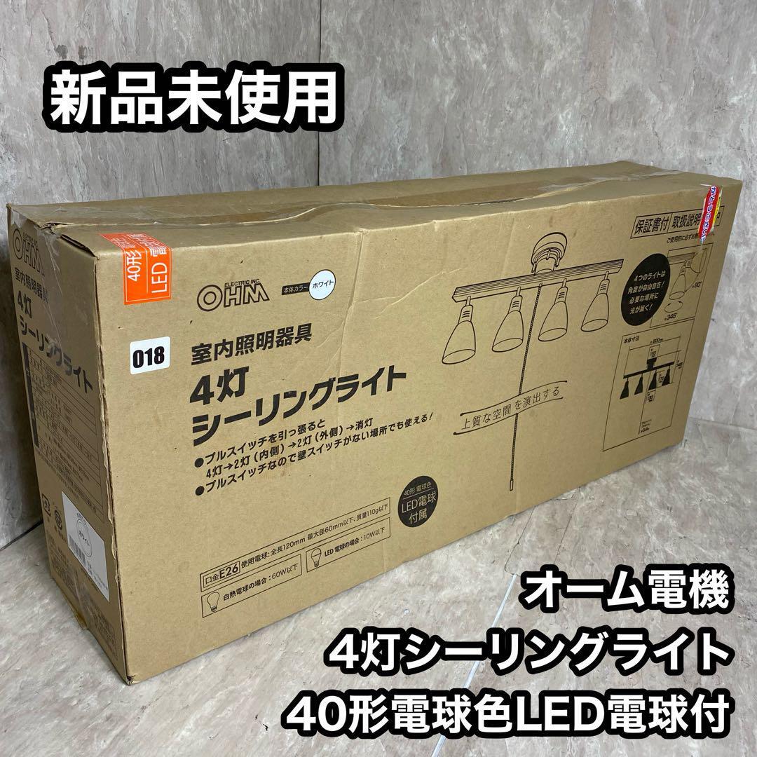- 新品未使用 OHM オーム電機 LT-YY40AW-W 4灯シーリング ホワイト 40形電球色LED電球4個付
