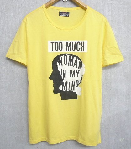 > ◆RARE RA-RE ラーレ アートメッセージプリント TOO MUCH Tシャツ イエロー サイズXL