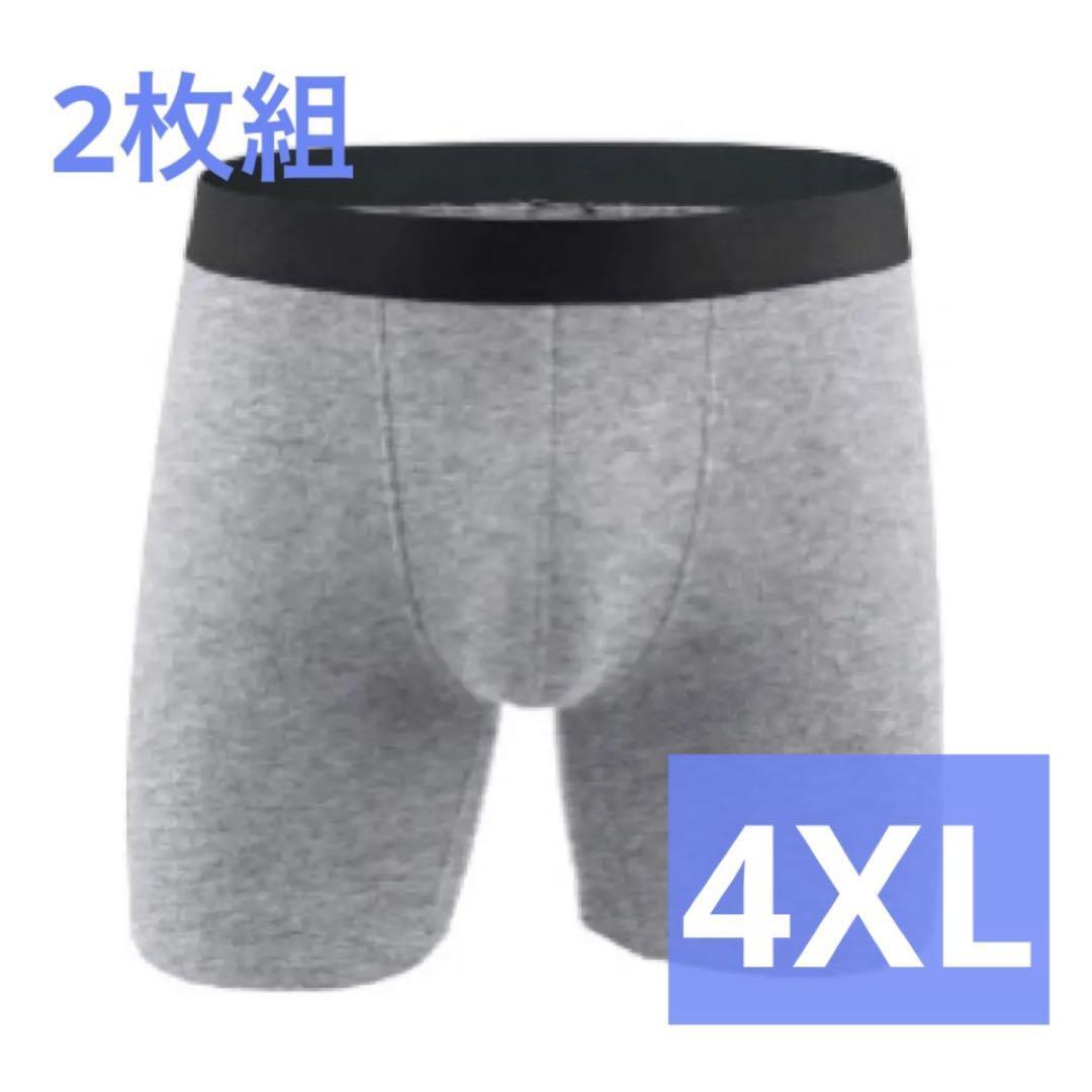 - 【グレー/4XL】2枚組 ボクサーパンツ 綿 cotton 吸水速乾 メンズ