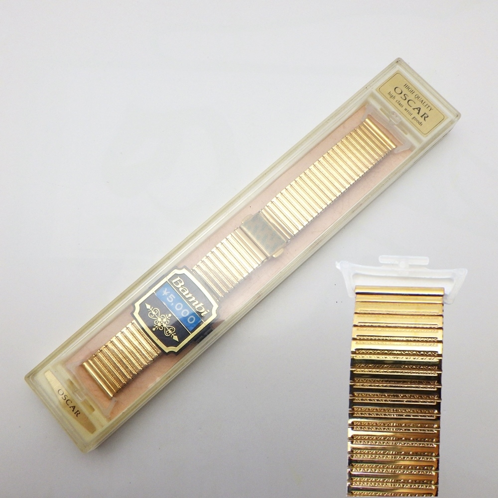 - 25-H-112【未使用】Banbi OSCAR バンビ オスカー 腕時計ベルト E4100 17mm 伸縮 ゴールドカラー SS デッドストック レトロ