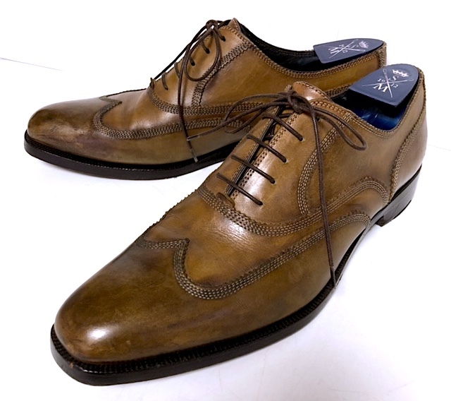 > ☆二点落札で送料無料!2A42【美品】ストールマンテラッシ ウイングチップ レザーシューズ ビジネス 革靴 ブラウン系 42(25.5-26㎝)