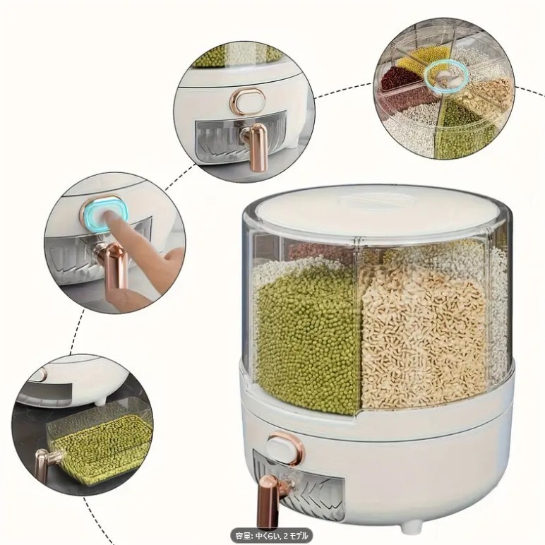 - 回転米バケツ、食品穀物保存容器、穀物および米保存容器 - 回転食品ディスペンサー