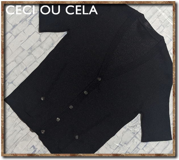 - 美品!!☆CECI OU CELA セシオセラ ラメ入り半袖カーディガン 黒☆