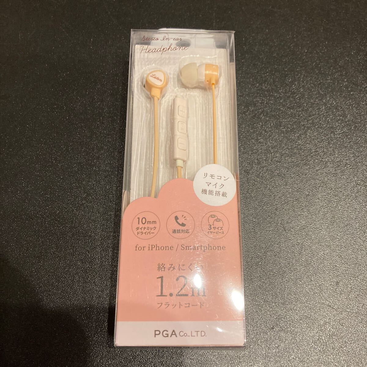 - ステレオインナーイヤーヘッドホン ハンズフリータイプ フラットケーブル 1.2m PG-SHE3PK4 コーラルピンク