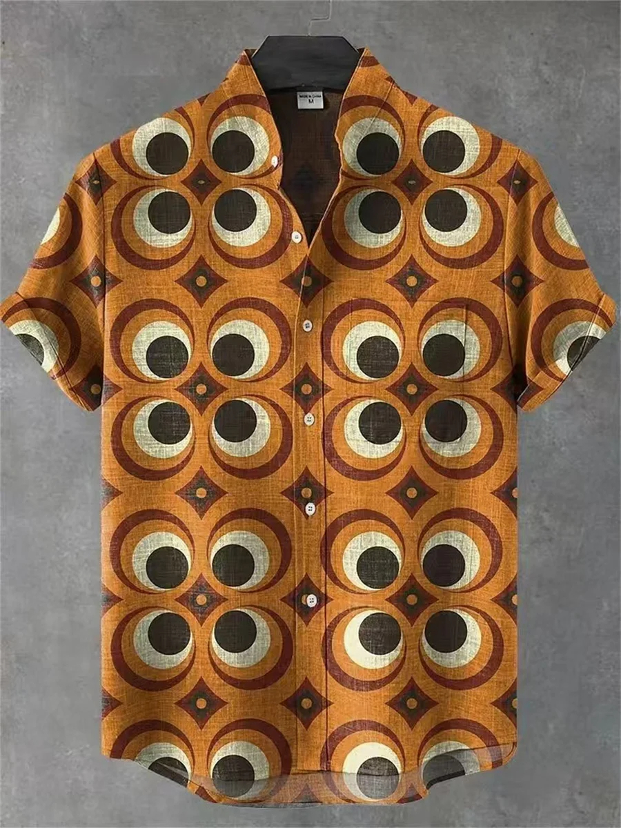 - ◆新商品◆メンズ アロハシャツ スタンドカラー レトロ ヴィンテージ レトロプリント アート柄① 半袖シャツ XS~5XL◆
