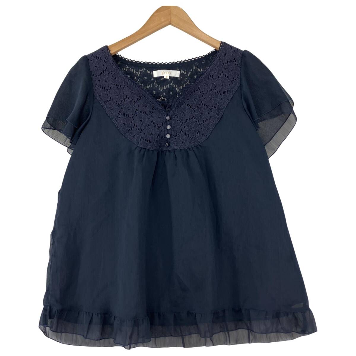 - grove グローブ フリル レース ブラウス sizeM/ネイビー ゆうパケットOK