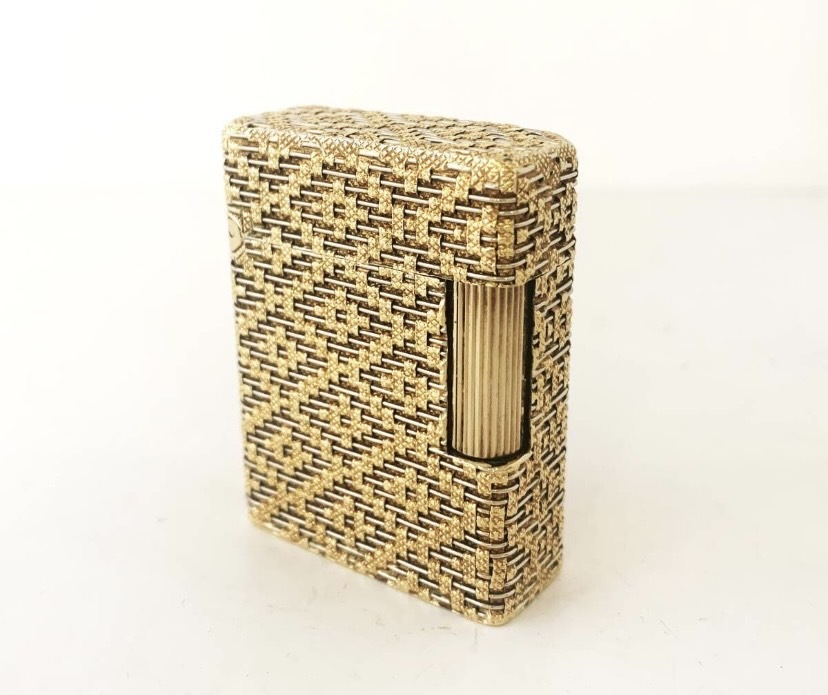 - 送料無料 【K18刻印】総重量 121.6g ガスライター ライン1 ローラー式 編み込み メッシュ X線検査済み 着火未確認現状品