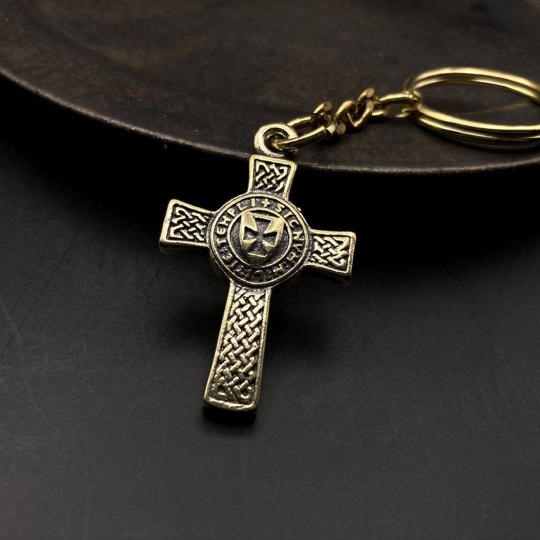 > 184 真鍮 キーホルダー 十字架 ケルト クロス ビンテージ 金運 レトロ アンティーク 真鍮製 チャーム アクセサリー パーツ ハンドメイド