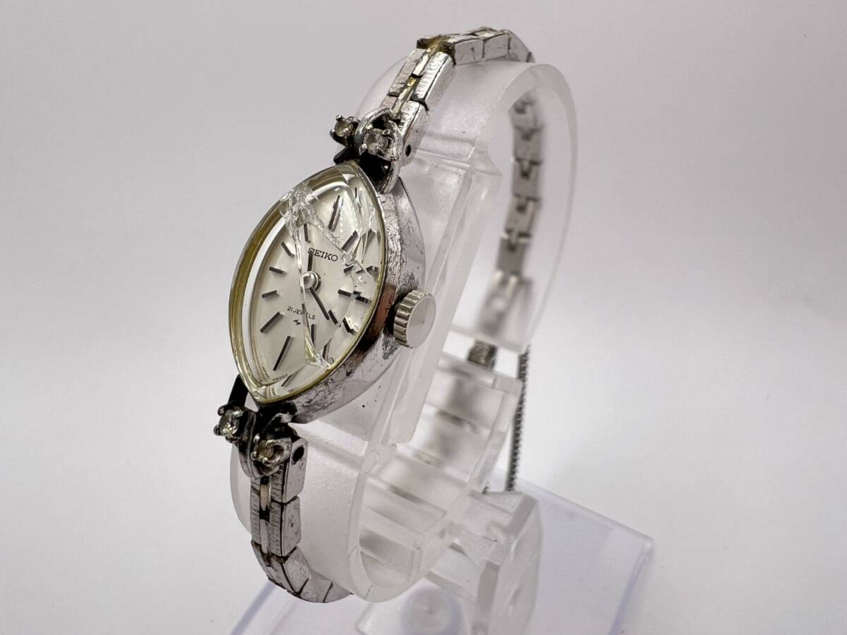 - B) セイコー SEIKO 21jewels 女性用 レディース 腕時計 手巻き 稼働【ガラス割れ】D168i